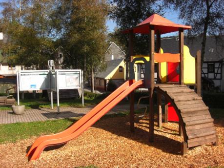 Naher Spielplatz für die Kleinen mit Informationstafel für die Großen