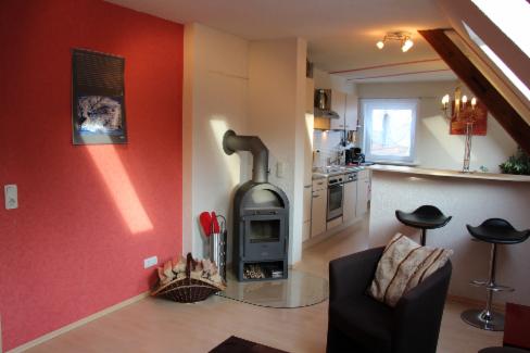 Unsere moderne Wohlfühl-Mansarden-Wohnung mit Kaminofen ist idealer Weise für 2 Personen geeignet und befindet sich im DG gegenüber der Ferienwohnung "Gemütlich & günstig".