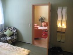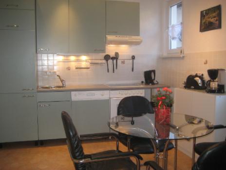 1 Schlafzimmer mit Doppelbett und 1 Zusatzbett (Baybett vorh. bei Bedarf); 1 weiteres Schlafzimmer mit 2 großen Betten (je 1m x 2m), Wohnzimmer (Laminat) mit Kaminofen, Couch (ausklappbar für 2 Pers.) + 2 Sessel; kompl. Küche (sep. Raum mit 2 Fenstern) mit Geschirrspüler, Ceranfeld, Backofen mit Grill, Microwelle, Kühlschrank mit Gefrierfach, Kaffemaschine, el. Samovar, Wasserkocher, Toaster usw., Kinderhochstuhl vorh., Tisch und Stühle; Badezimmer mit Fenster, Handtuchwärmer, großer Badewanne und Dusche; Flur