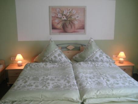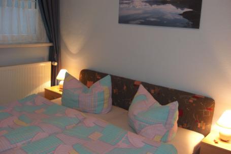 Zweites Schlafzimmer mit Doppelbett, 3-türigem Kleiderschrank, Laminatboden - hervorragend auch als Kinderzimmer bzw. für Allergiker (Laminatboden und kochfeste Kissen und Decken) und Senioren geeignet